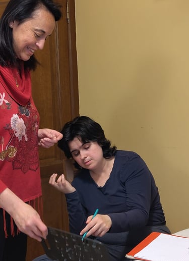 Elle découvre la méthode RPM à l'été 2016 en participant à un workshop de 4 jours en Angleterre donné par Soma et organisé par "Unlocking Voices". Elle a été époustouflée par les leçons de Soma et a pratiqué la RPM tout de suite en rentrant avec sa fille Aurore (qui avait 11 ans à l'époque). Elle a ainsi découvert la pertinence de cette approche et l'intelligence de sa fille, ce qui a changé le cours de son éducation en intégrant plus d'activités cognitives et fonctionnelles de son âge. Aujourd'hui, Aurore a 20 ans, elle est curieuse d'esprit et adore apprendre, aller au cinéma, faire de la randonnée, faire du shopping, aller chez la coiffeuse ...